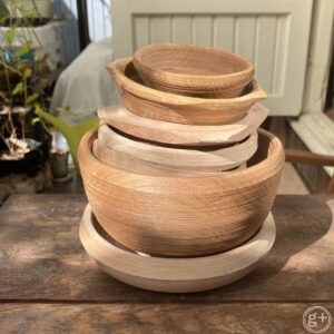 ぐり と グリーンウッドワークでは、事情あって伐られなくてはならなかった木々だけを、原木から手道具で成形して、暮らしの日用品をつくっています。お庭や道路沿い、身近な森で暮らしてきた、多種多様なその木の奥にある聲を聴きながら、感謝を込めて一つひとつデザイン。同じものはありません。フシや樹皮、木目など、その木の生きざまを尊重したデザインには、身近な木々とつながり自然とつながる暮らし――生きものの一員として、あらゆる存在を尊重する暮らし――への願いを込めています。